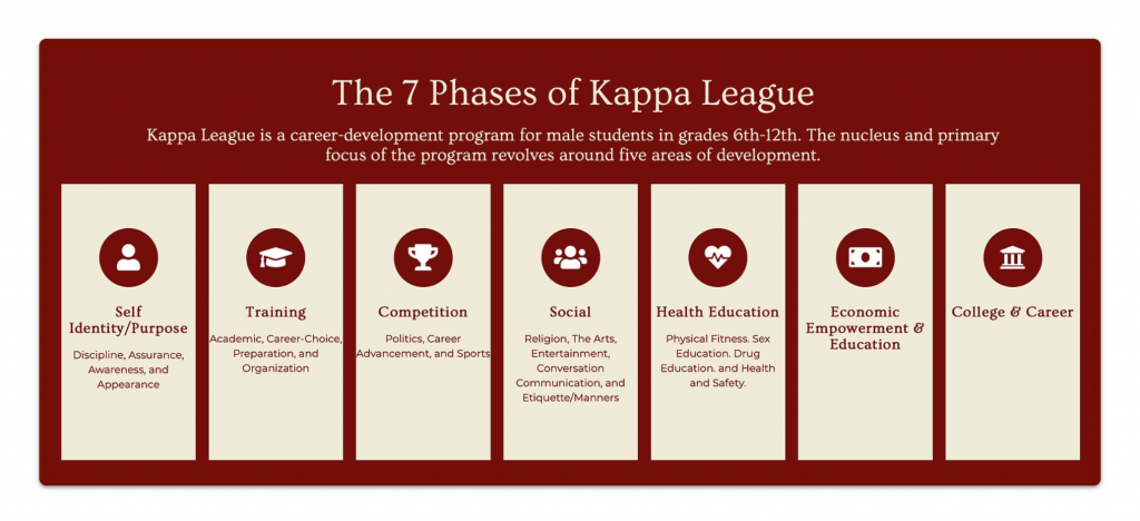 Kappa League is a program for the educational, occupational and social guidance of male students in grades 6th–12th.